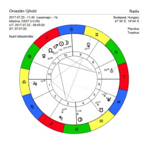 Nagyon heves ez az Újhold (Oroszlán Hold), egyrészt a Mars bolygóval való együttállás miatt, másrészt az Uránusszal létrejövő kvadrát kapcsolat miatt. Az Újhold, mint az újrakezdések szimbóluma most aztán jókora tuningot kap, hogy beinduljanak a belassult folyamatok. Az Uránusz kvadrátja a hármas együttálláshoz (Mars-Nap-Hold) adrenalin injekcióként funkcionál – egyenesen a szívbe (Nap), és újraéleszti lelkesedésünket és életerőnket, amik a változtatás igénye felé hajtanak. Ez egy olyan feszültségforrás, ami ebben a kiemelt időszakban a meglehetősen sok frusztrációt, stresszt és hektikus eseményt hozhat.